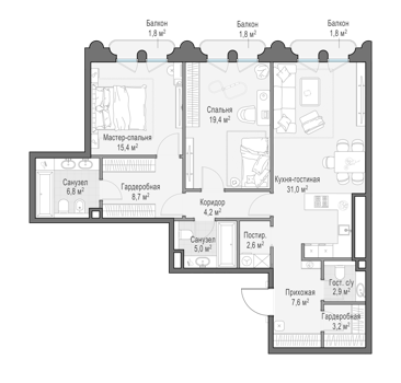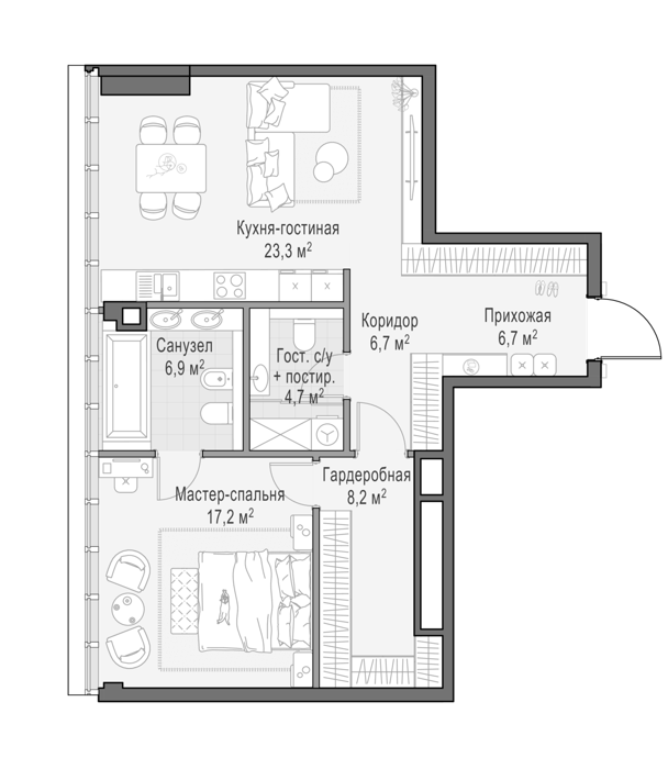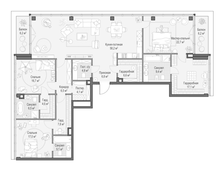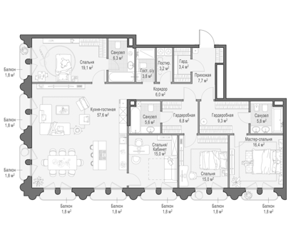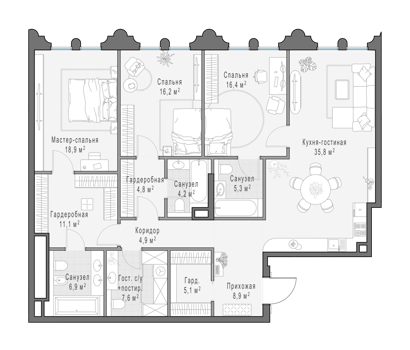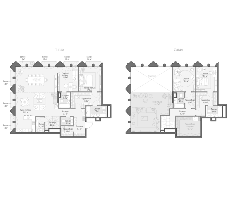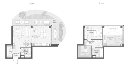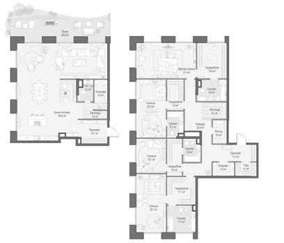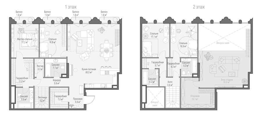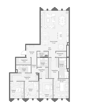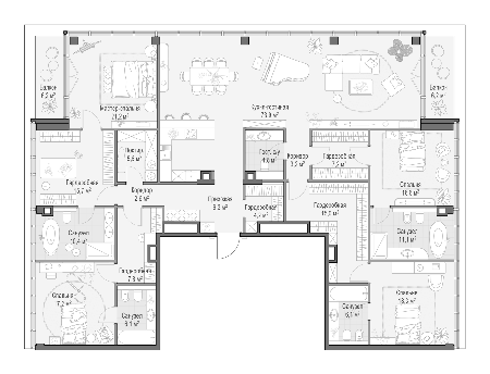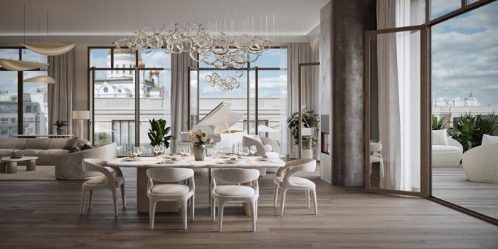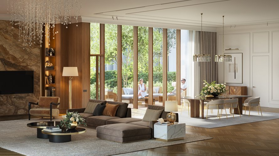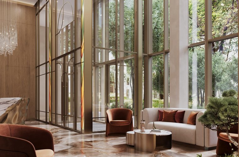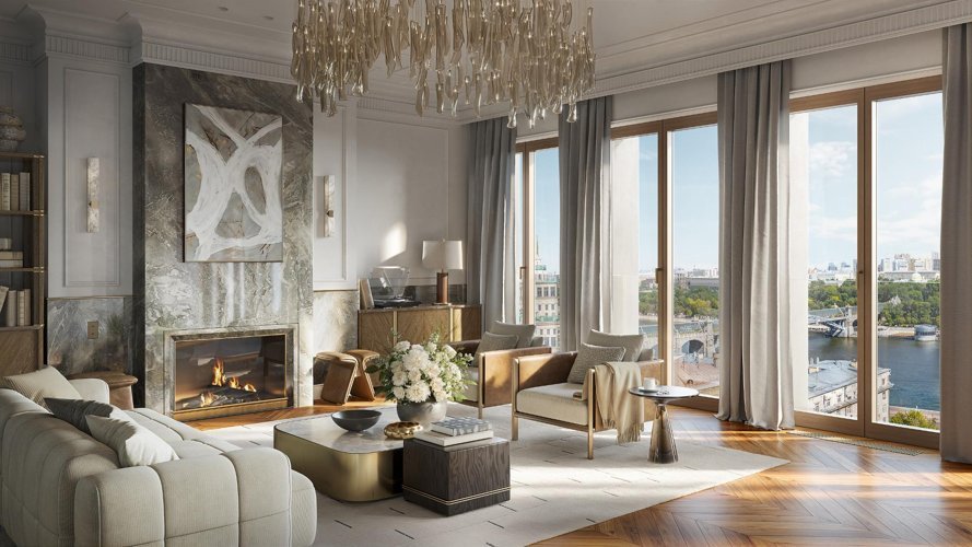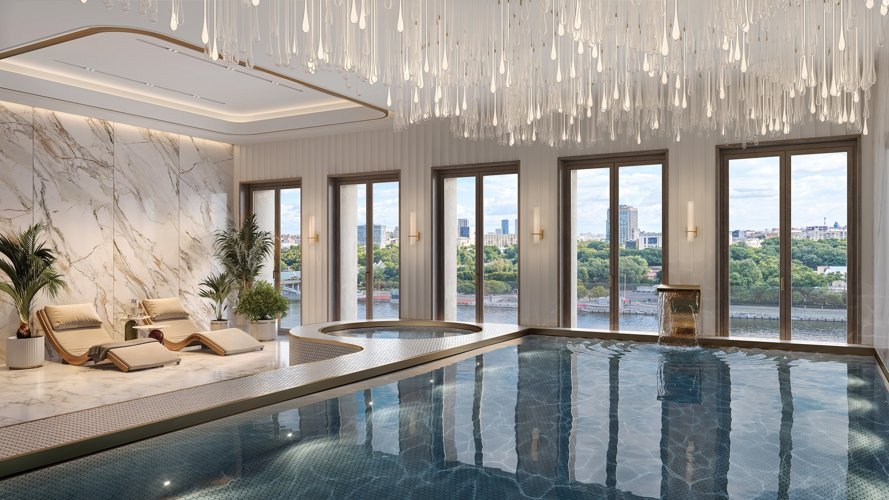 В клубных домах роскошный выбор форматов жилья на самый взыскательный вкус. Благодаря панорамным окнам, балконам, лоджиям и террасам открываются живописные виды на центр: Кремль, Москву-реку, Нескучный сад и парк Горького — и на витражный парк под соснами