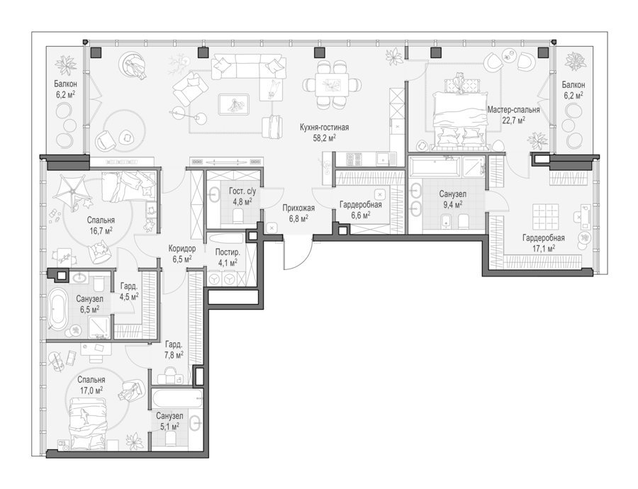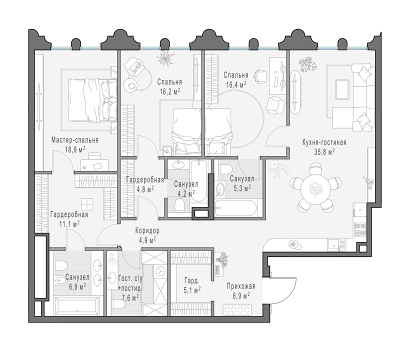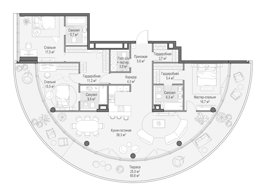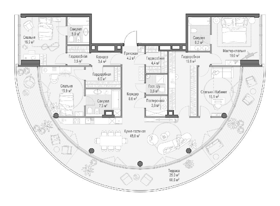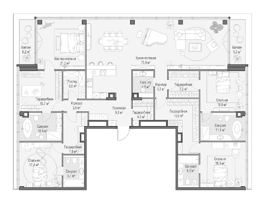 В едином ансамбле переплетены три узнаваемых архитектурных стиля: авангард, современность и неоклассика, облик которых никогда не надоест и всегда будет выглядеть актуально