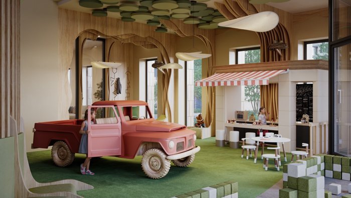 Большая игровая комната Kid’s Lab в пространстве Clubhouse. Её можно забронировать, например, для проведения дня рождения. Здесь будут проходить познавательные мастер-классы и весёлые квесты.