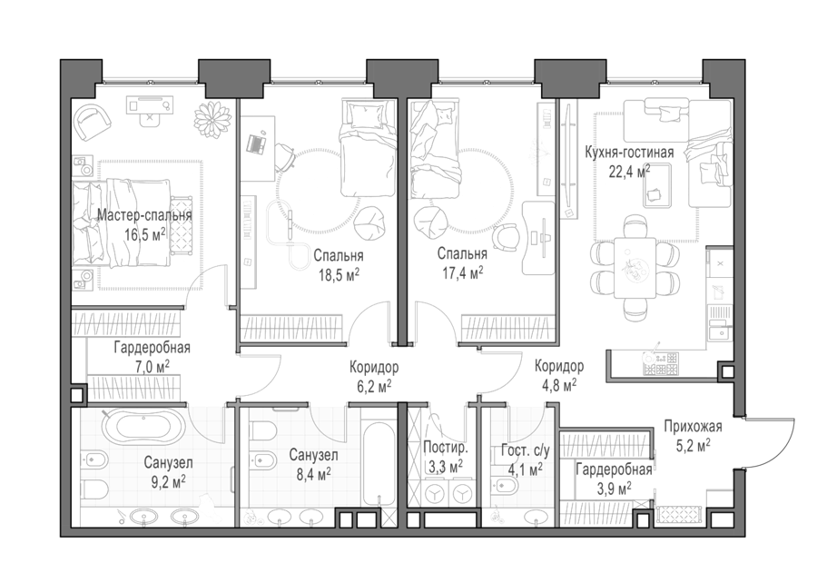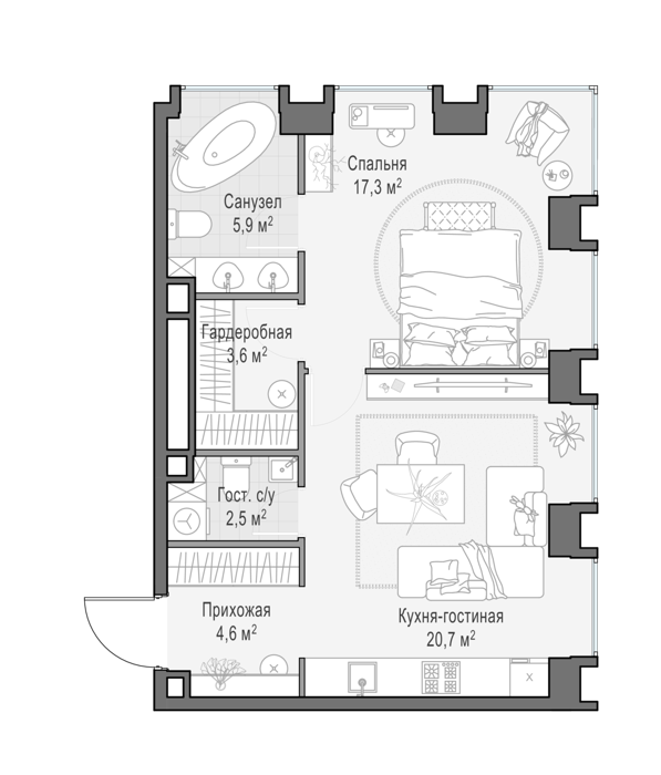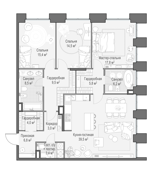 В шаговой доступности от вас ухоженные парки с премиальными торгово-разлекательными заведениями, знаковые исторические места, деловой центр, благоустроенная набережная