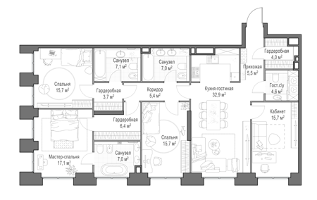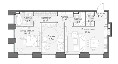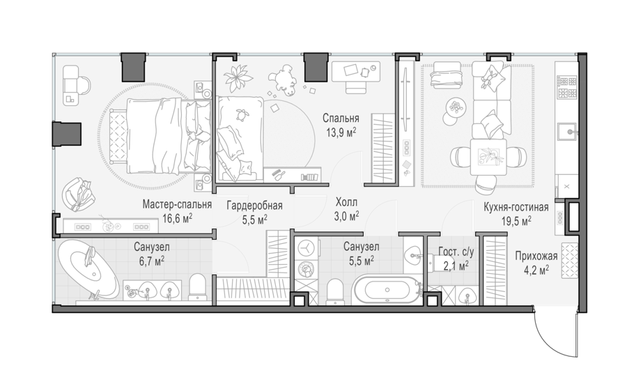 Площадь от 55 м2