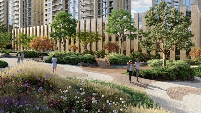 На территории квартала раскинулся роскошный всепогодный двор-парк площадью 1,7 гектара с