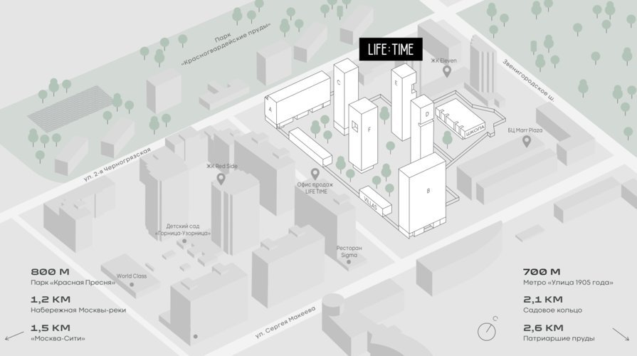 В локации расположены рейтинговые детские образовательные учреждения. Рядом Московский зоопарк, Планетарий, гастро кластер Трехгорной мануфактуры.