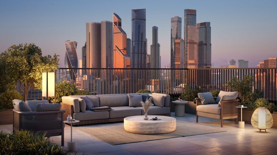Элегантно оформленная клубная гостиная с живописной террасой на крыше — отличное место, для того чтобы зарядиться творческой атмосферой, завести полезные знакомства, просто пообщаться с соседями и отвлечься от работы или домашних дел.