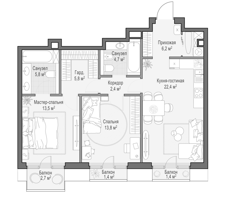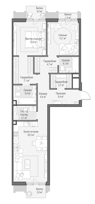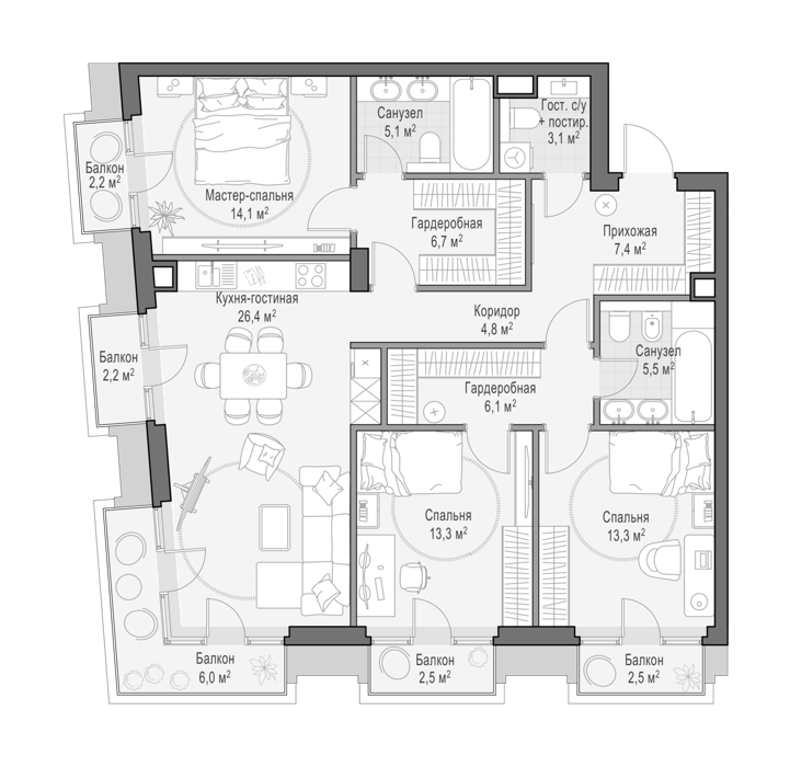 Площадь от 96 м2