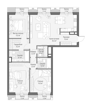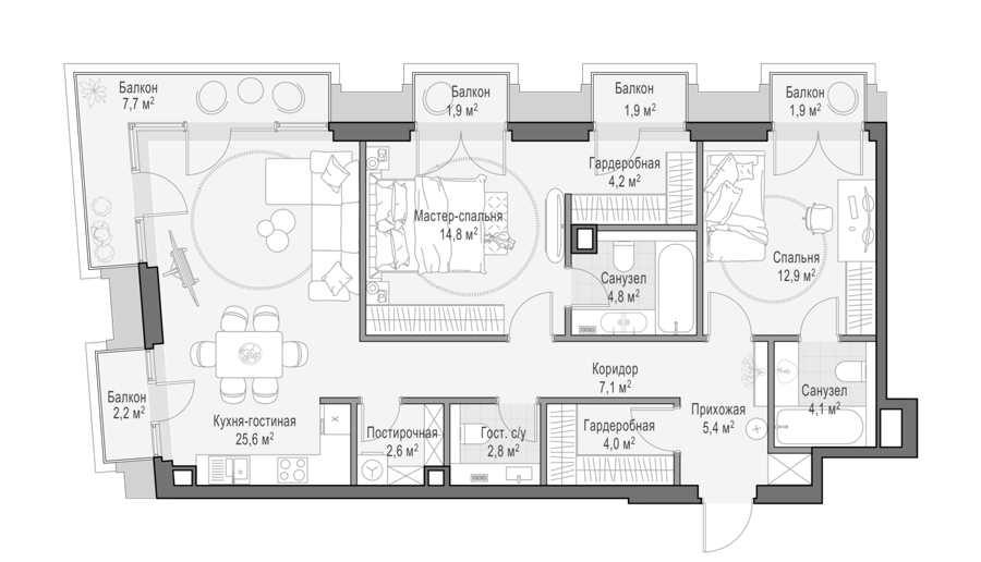 Площадь от 129 м2