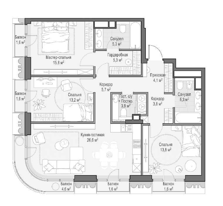 Особые технологии строительства позволили превратить каждое жилое пространство в звукоизолированную капсулу:
