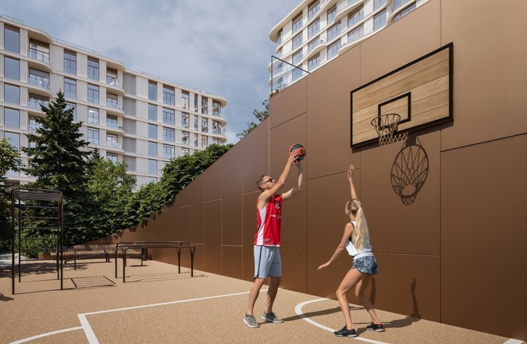 Для здорового образа жизни здесь есть вся спортивная инфраструктура, общей пл. 1008 кв. м: бассейн 25 м, спа-зона, фитнес цент 510 кв.м, пространство для йоги, уличный воркаут, многофункциональная площадка.