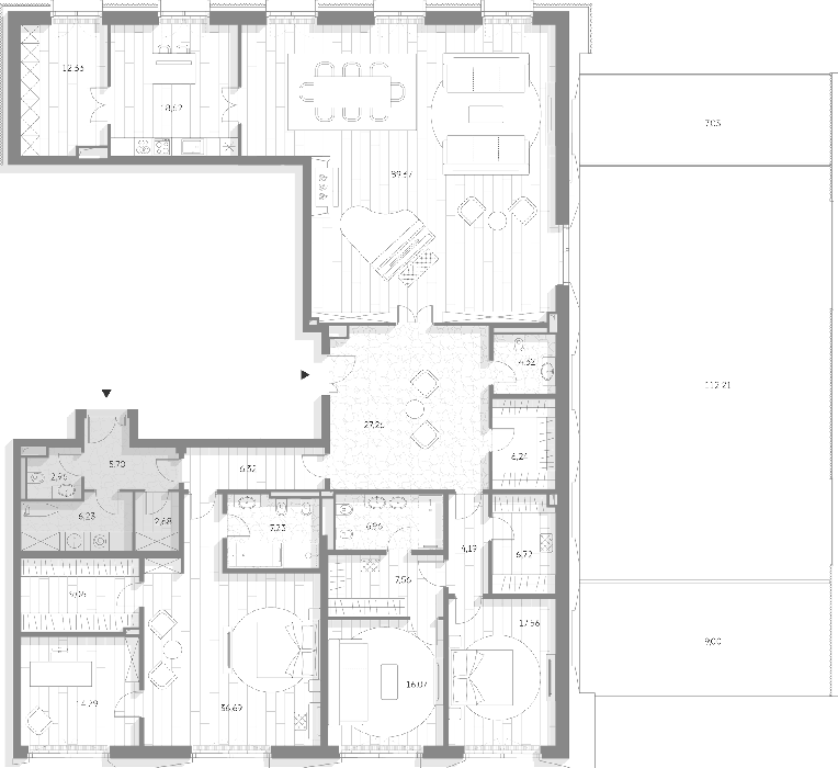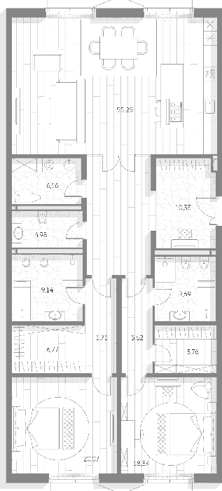 Квартиры предлагаются с подчистовой отделкой White Box Deluxe. Максимальная продуманность планировочных решений и возможность адаптировать пространство квартиры под свои потребности и индивидуальный дизайн-проект.