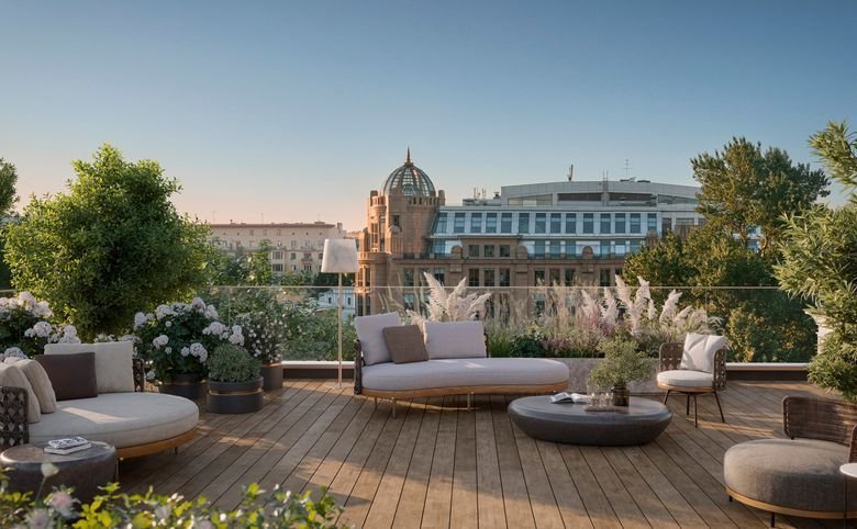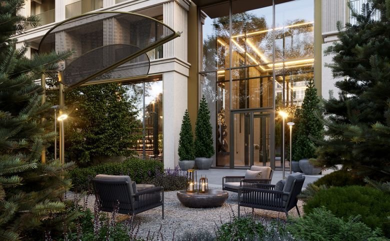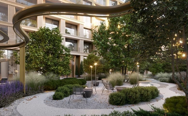 Знаковой точкой и сердцем «приватного леса» в центре столицы станет мощный многоствольный клен с раскидистыми ветвями, символ семейного древа. Вокруг него расположатся зоны для отдыха и цветники