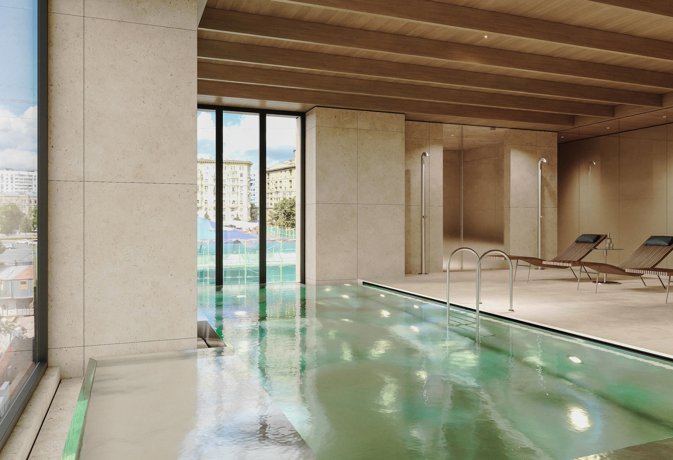 Для резидентов предусмотрен бассейн, спа, хамам, массажный кабинет.
