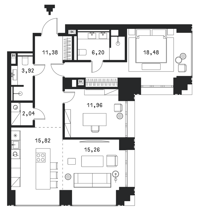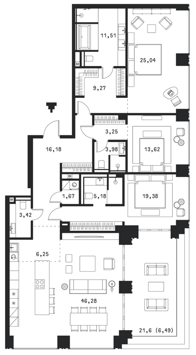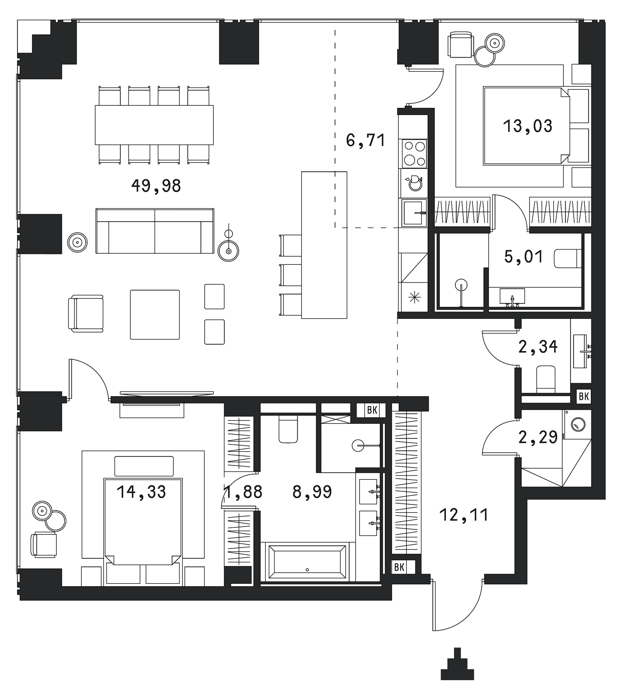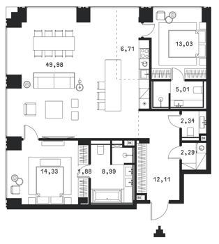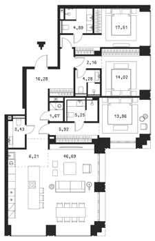 Площадь от 46.8 м2