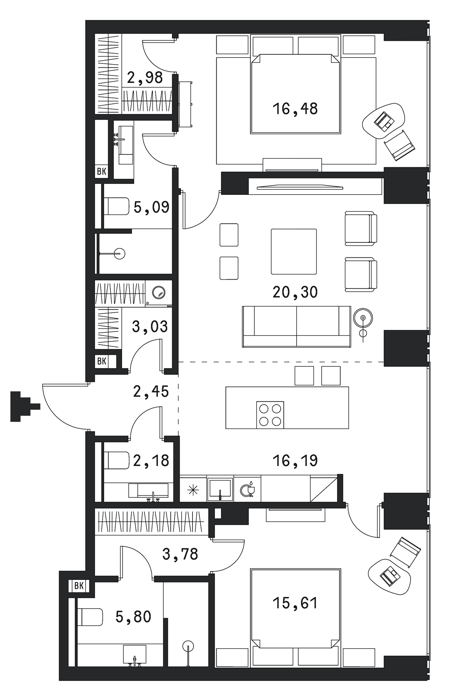 Площадь от 85 м2